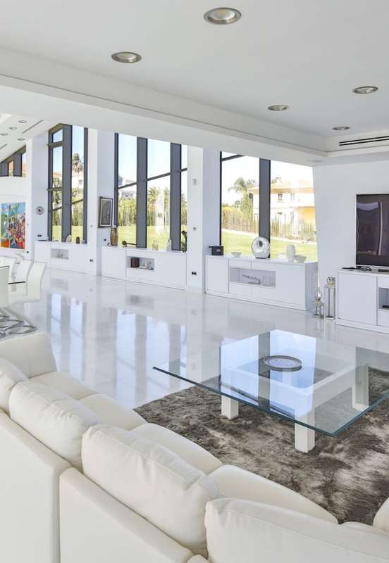 We show you one of the best and exclusive properties throughout Spain, in the Sotogrande area. This unique property nestled in a plot of 9,542 m2 has all the leisure facilities that you can imagine, such as disco, gym, spa, playground, acoustic recording room, cinema, tennis track, bowling and a length etc. .. its 3,850 m2 built are divided into 6 luxury luxury villas with suite bathrooms, living room, kitchen, terrace and private garage for two cars. As a central link to these six independent properties we find a magnificent construction with a plant divided into a superb lounge of more than 150m2 with capacity for 50 diners, TV room, board game room, and professional industrial cuisine. The lower floor is fully dedicated to leisure with pool room, compressed air shooting area, professional bowling, gym and complete spa. In the outer zone you can enjoy a unique and unimaginable pool in Europe that becomes a magnificent marble floor when it is required, falling its waters through a waterfall.